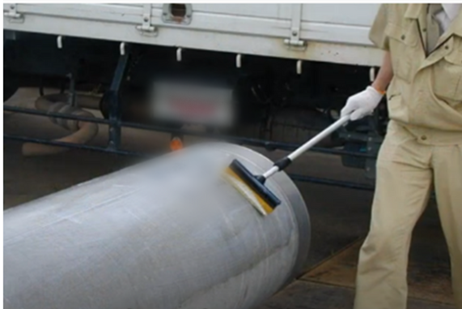 コンクリート管表面が乾いている状態で、スポンジブラシ等で管表面に均一に塗布します。約3時間乾燥させたら、出来上がりです。重ね塗りは不要です。